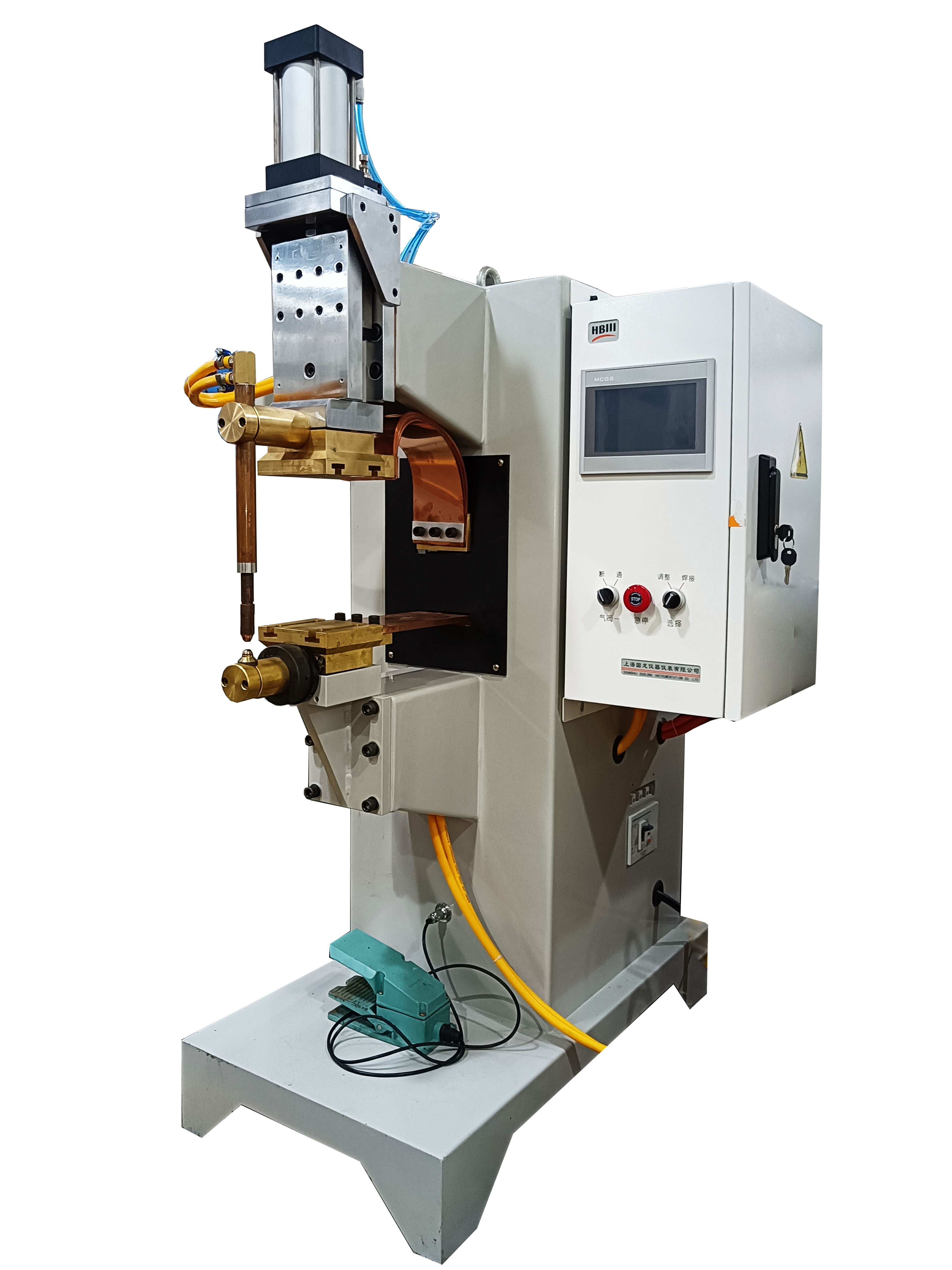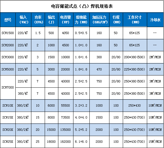 點焊機又叫碰焊機,一般指電阻焊機。根據電源分為交流點焊機、中頻點焊機、儲能點焊機、單/三相次級整流點焊機。
